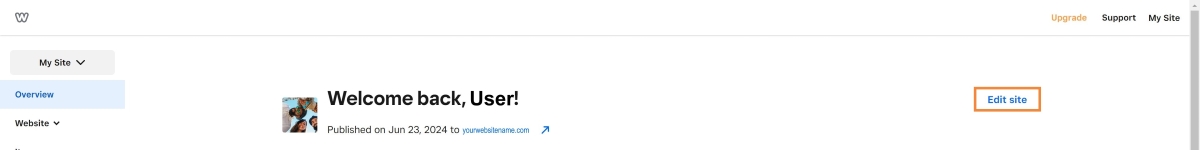 Melden Sie sich bei Ihrem Weebly-Konto an und öffnen Sie den Weebly-Website-Editor, indem Sie auf Site bearbeiten klicken.